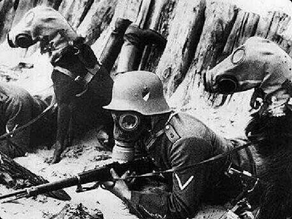 Perros con máscaras para protegerse del gas tóxico durante la I Guerra Mundial.